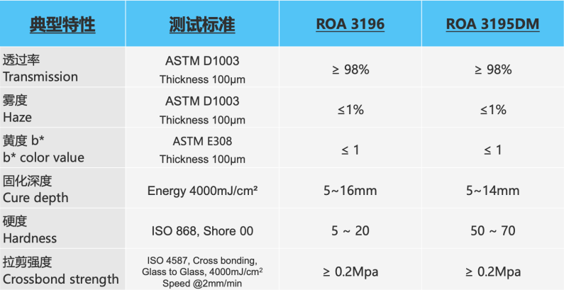 能較好保護顯示模組。ROA 3196可填充各種斷差表面,有助於製成更薄 更輕的顯示模塊。 |