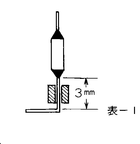 在你設計應用或安裝溫度保險絲之前請閱讀本說明. 本說明的目的是為了降低由於應用中不正確地設計.安裝方法及為害的工作環境.而導至引起的溫度保險絲工作不正常的危險 功能 溫度保險絲是連接於電子電路上及可以感受到熱的位置(在任何不正常熱是容易被偵測到 溫度保險絲只可供給電路一次使用並不可重覆使用 動作原理:當電流過頭情況時.它的溫度會上升隨後到達保險絲金屬之元素溶斷點.此時金屬之元素會向後形成兩個小圓點同時斷開 溫度保險絲之外殼材質具有於斷路衝擊時不致於產生火花危及人員 設計 溫度保險絲電氣之等級分為TH.TF.TM .於設計時須選擇適當應用(詳細可參照目錄之使用說明) 使用時須設計模型聯結應用.同時選擇適當溫度使用 於正常工作下溫度保險絲提前開路是因為有 過熱之因素存在.故於設計時須避開可查覺存在之熱源同時依下列指示設計:A 溫度保險絲可以聯接一冷卻物貫穿熱源.避開保險絲導線直接連接於熱源上 B 溫度保險絲設置地方不可鄰近熱源 C其設置或末端須試驗可能過熱之熱源.不致影響溫度保險絲過早開路或損壞 4. 在變壓器外殼或其他不具熱源之應用上.任何溫度須控制在導線上同時保險絲必須 保持有良好傳導之連接方式 5. 建議安裝保險絲之適當位置是使保險絲本體同導線之感熱維持不變 6. 當可預期之壓迫及振動部品對於設計應用上須熟慮不可設置於具劇烈振動位置 安裝 溫度保險絲可以以焊接.點焊.絞接方式連接 對於導線和暴露物件須至少有1.6mm之隔離.介於導線末端及金屬物之接地端至少必須有6.3mm距離 保險絲之金屬元素不可扭成捲曲狀 應用於垂直方向對於導線不可大於1.5磅拉力.應用於垂直方向推力不可大於0.4磅 施於引腳上之軸方向拉力及推力絕不可超過規定試驗拉力及推力之最大試驗值1.5磅及0.4磅 ![]() 請以工具操作以確保引腳之彎曲有弧度 B引腳不可距根部3mm外彎曲(見圖一)(表一) C彎腳不可夾到外殼及封口樹脂 D不可剪斷剪傷引腳及破壞樹脂 封口樹脂及外殼不可 被損傷.燒灼及過熱借機械力量於連接及使用說明: 連接方式 9.1 a焊接方式對於距離樹脂本體散熱導線 須有10mm以上之距離(見圖三) 9.1 b對於焊接完成後請讓保險絲停留數秒. 直到周圍溫度冷卻再行彎曲以避免保險絲內金屬元素產生裂痕形成開路 9.1 c對於焊接時間距本體10mm於300℃焊接時溫度時間建議